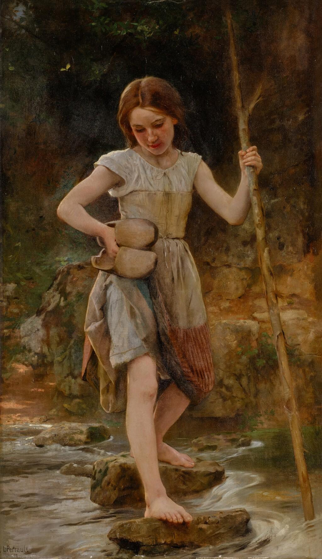 Léon Bazile Perrault (1832 - 1908): "Bachüberquerung", Öl auf Leinwand, 155 x 91 cm