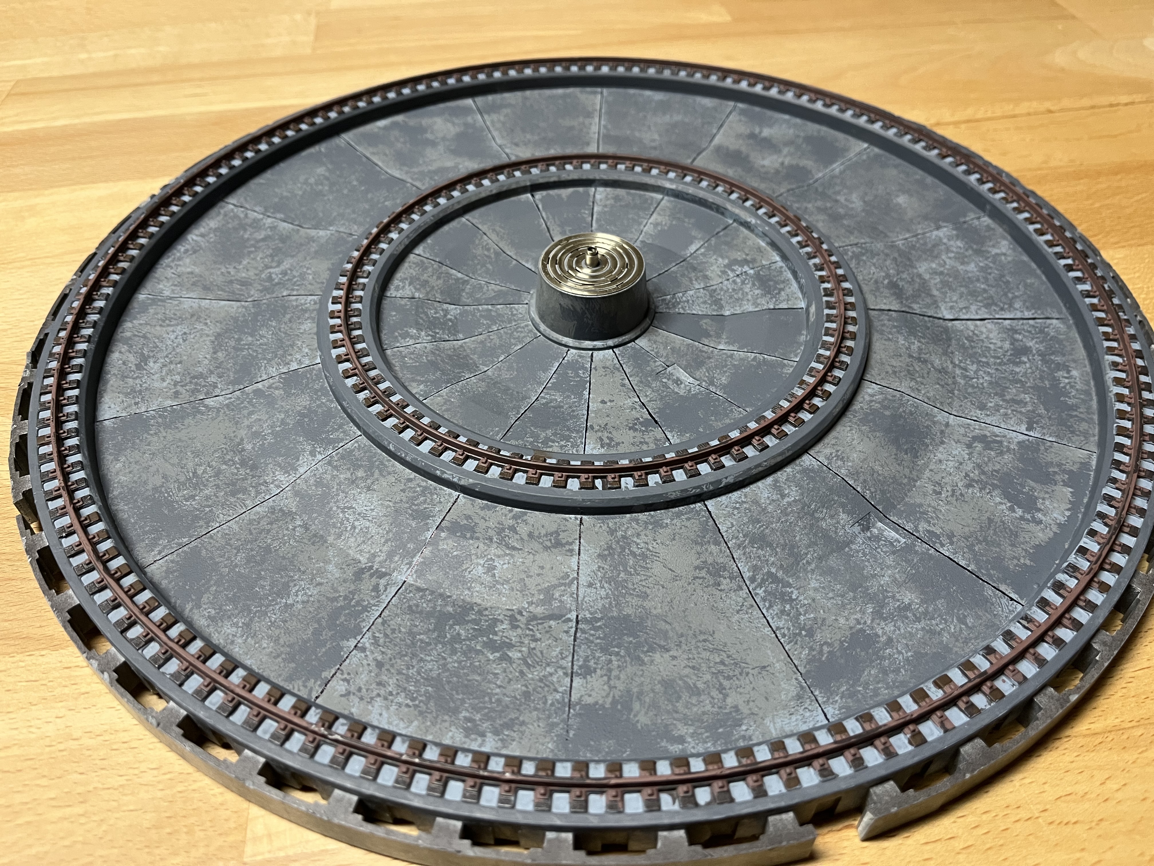 Die Alterung des Drehscheibentellers ist ziemlich weit fortgeschritten. Das fehlende Stück der Umrandung ging vermutlich schon beim Vorbesitzer verloren. (Mitte November 2025)