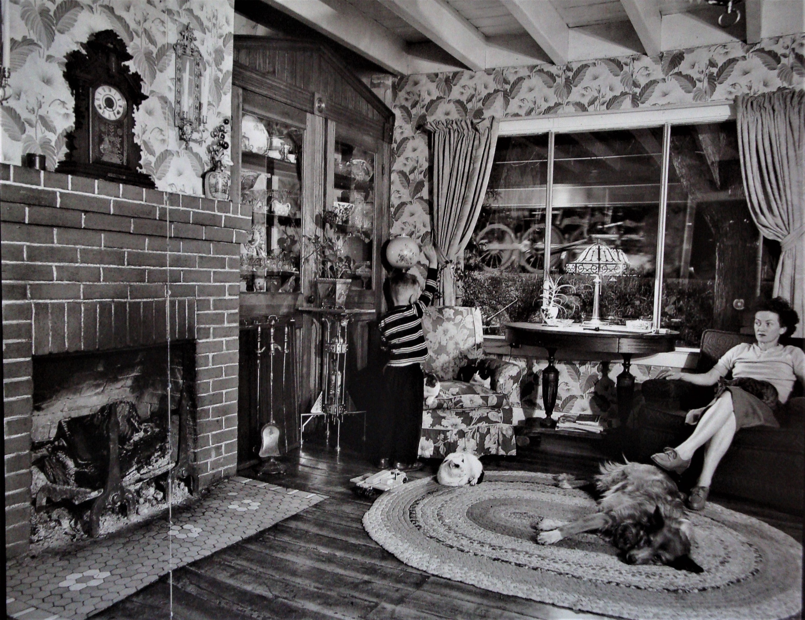 Das zweite Foto ist für mich ebenfalls eine Quelle der Inspiration: Südlich von Lithia liegt das Haus von Hester Fringer, in deren Wohnzimmer auch die Aufnahme entstand. Sie zeigt ein allabendliches Ritual: Enkel George Poulis winkt der Lokmannschaft des vorbeifahrenden Zuges Nr.2 zu, während sich seine Mutter und die Lieblingstiere der Familie am Kaminfeuer wohlfühlen. Die Idylle erinnert mich an die alten Lassie- oder Fury-Filme, die ebenfalls in dieser Epoche (und auch in s/w) gedreht wurden. Bürgerlich-US-amerikanische Lebensart. Idylle pur! In Erfüllung gegangene Emigrantenträume, real gewordene Tellerwäscher-Geschichten. Etwa so ätzend wie bei uns die ewig-gestrige Heidiland-Atmosphäre, die man allenfalls noch in den ebenso rührseligen wie verstaubten Gotthelf-Verfilmungen nacherleben kann. Der aufmerksame Betrachter kann eventuell in diesem Foto den Keim erkennen, der dazu geführt hat, dass in den 1960er Jahren systemkritische Studenten auf die Strasse gingen, um gegen den Vietnamkrieg und die Verlogenheit des Establishment zu demonstrieren, und schliesslich, 1969 in Woodstock (New York) mit dem grössten Openair-Festival aller Zeiten die Hohe Zeit der Hippie-Kultur einläuteten.