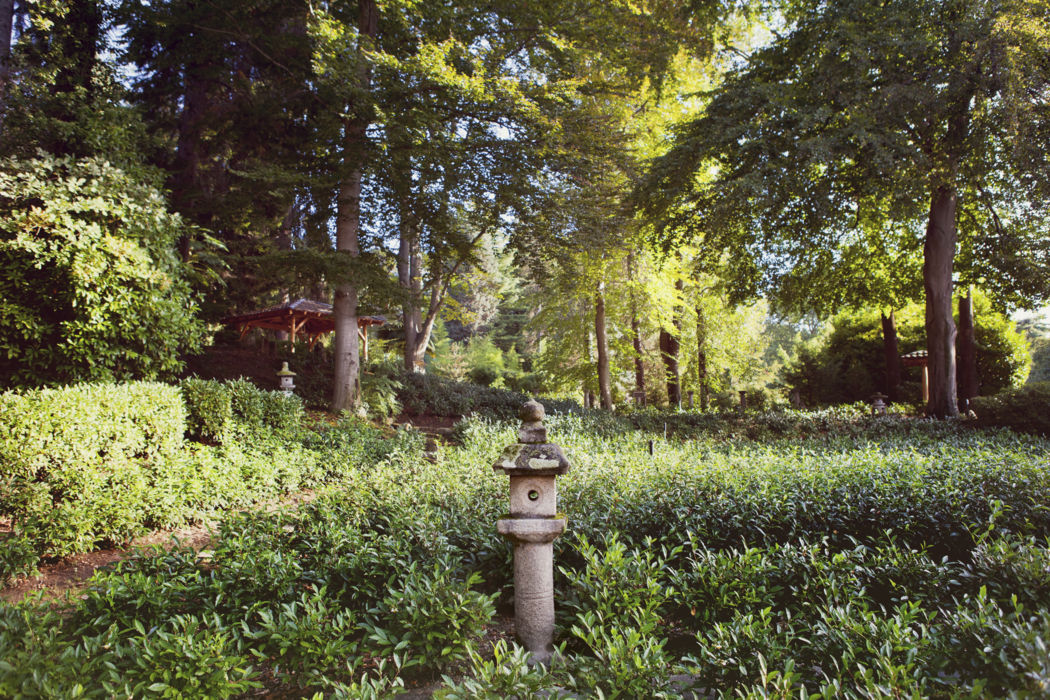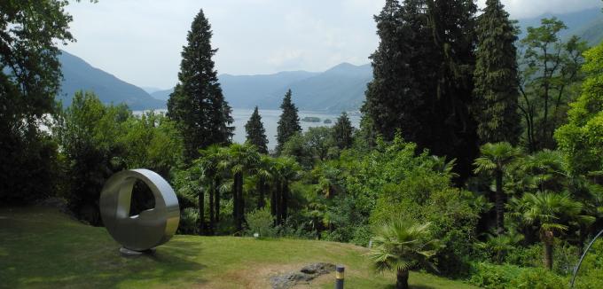 Blick vom Hotel Monte Verità über den Park auf den Lago Maggiore.