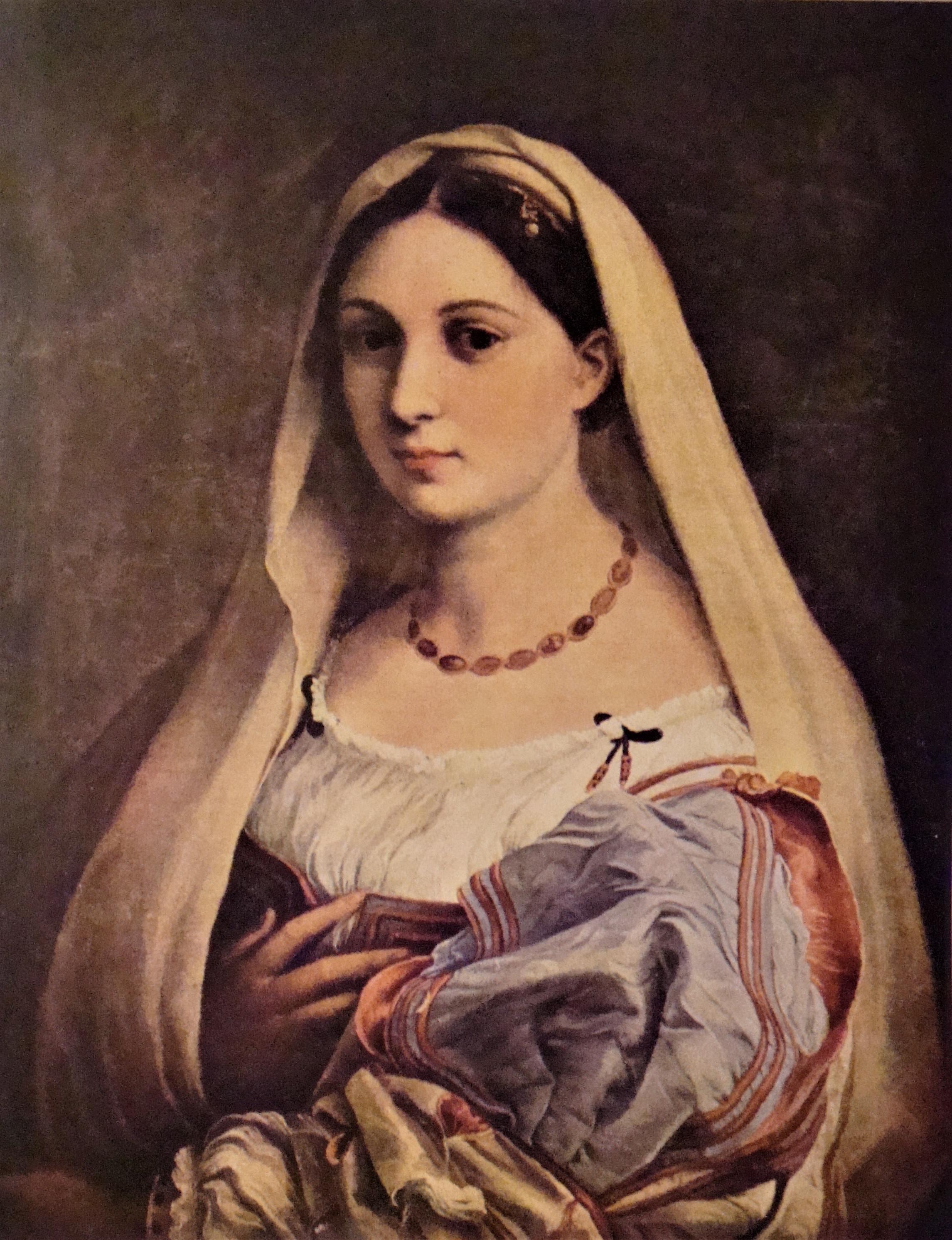La donna velata (Die Frau mit dem Schleier), um 1504 entstanden, gehört wohl zu den bekanntesten Werken des italienischen Renaissancemalers Raphael, mit vollem Namen Raffaello Sanzio, geb. 1483 in Urbino, gest. 1520 in Rom.