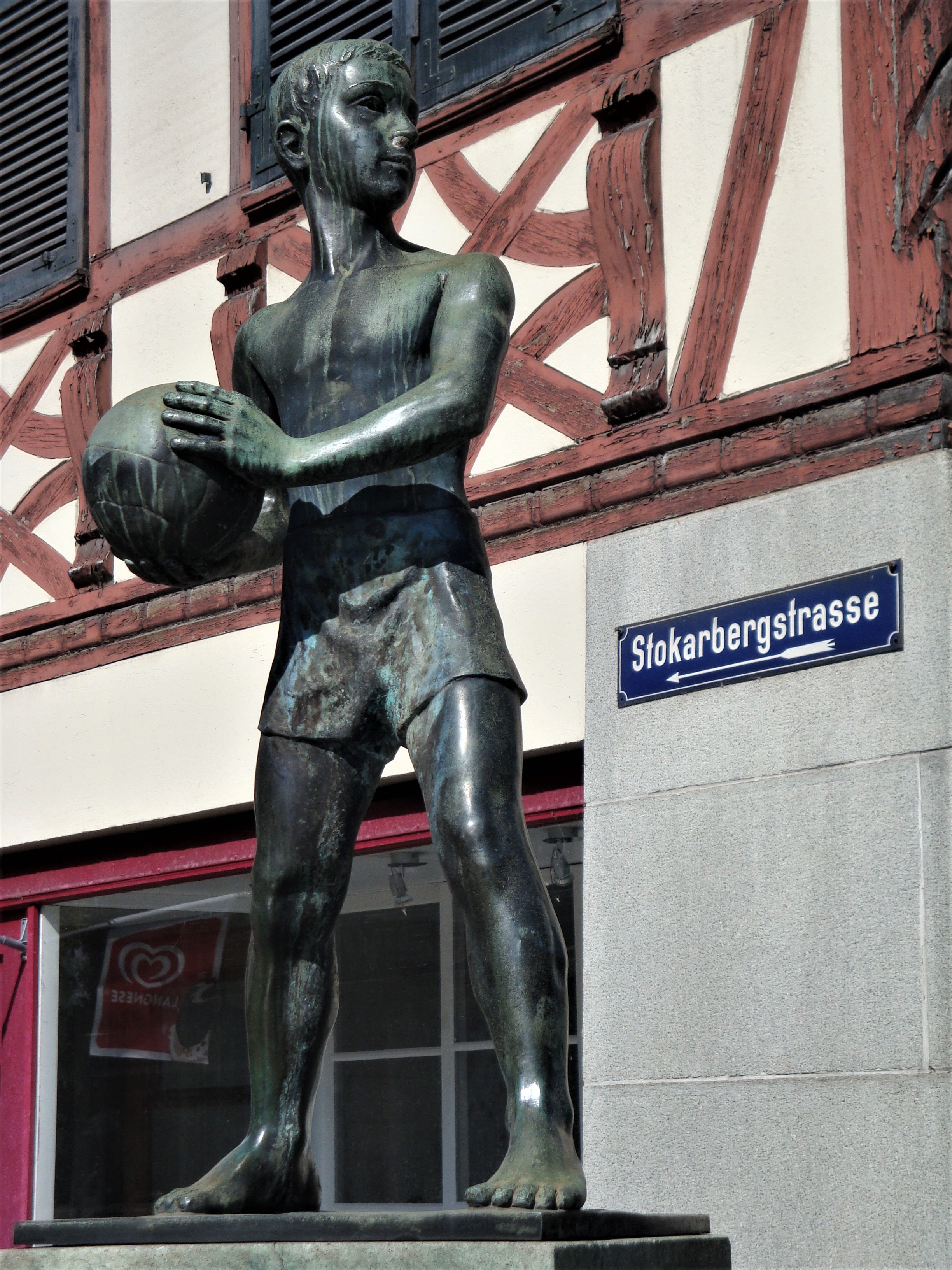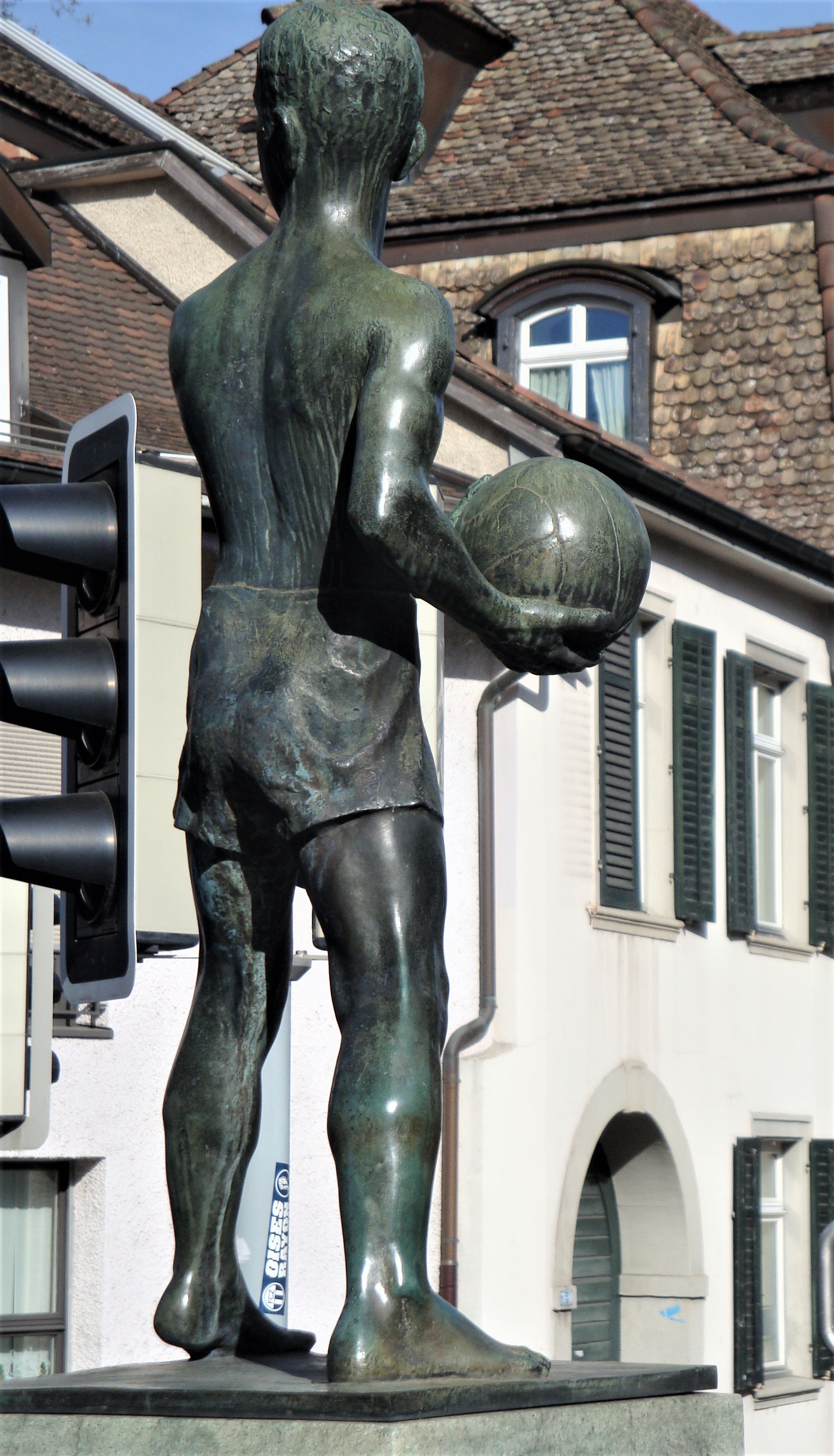 Der ballspielende Junge beim Steigbrunnen in Schaffhausen (erstellt 1935)