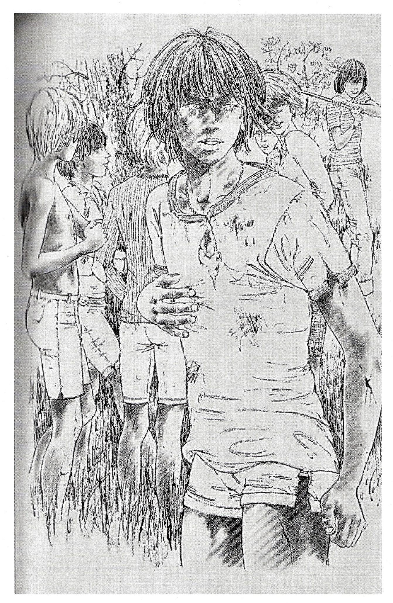 Weitere Zeichnungen von Michel Gourlier, hier aus dem Jugendroman Engoulevent (Nachtschwalbe) von Dominique Mauriés