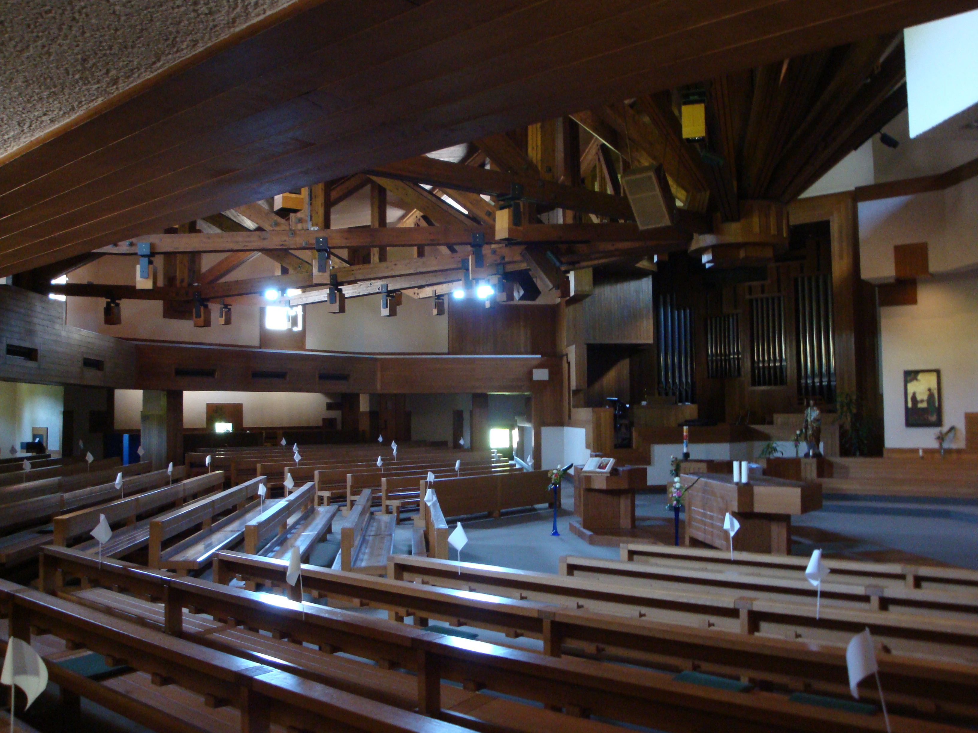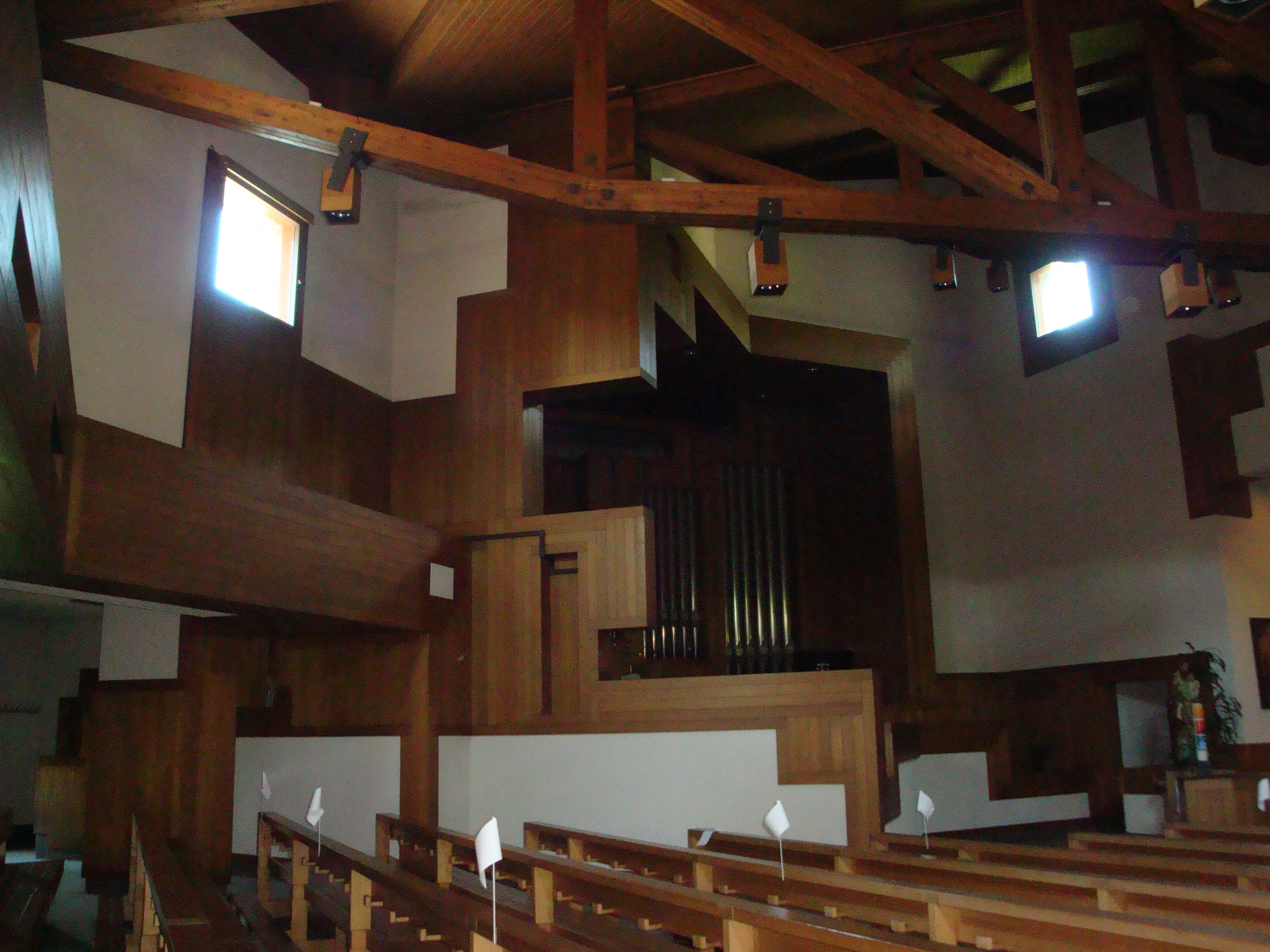Wie in allen Förderer-Kirchen befindet sich die Orgel samt Sängerbereich in der Nähe des Altarbezirks. Die mit Holz verkleidete Brüstung grenzt den leicht erhöhten Orgel-und Sängerbereich vom übrigen Kirchenraum ab. Der Orgelprospekt ist in die Rückwand eingelassen, welche sich vom Kirchenraum als Nische absetzt.