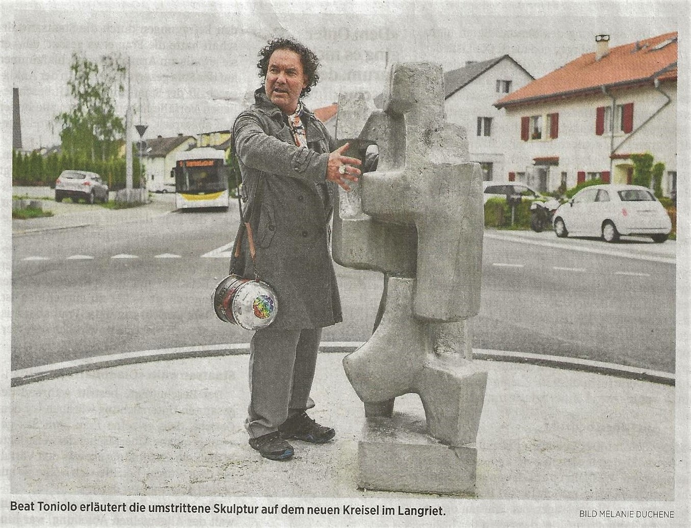 Zum Vorgehen und zum Konzept bei der Ausgestaltung des Kreisels sagte Gemeindepräsident Rawyler: "Wir hatten die Kreiselgestaltung ausgeschrieben. Die Reaktionen auf die Ausschreibung waren allerdings gleich null." Und er erinnerte in diesem Zusammenhang an die Kontroversen um die Neuhauser Kreisel bei der Scheidegg und am Ochsenplatz. "Sollten die Wogen wegen der Skulptur an der Langrietstrasse nun derart hochgehen, dann nehmen wir die Skulptur einfach wieder weg und lagern sie wieder ein." Dies aber wäre gewiss nicht im Sinne der Autofahrerin, die während der Debatte am Kreisel auf Schritttempo verlangsamt, die Seitenscheibe runterlässt und auf die Frage "Wie finden denn Sie die Skulptur?" sagt: "Super!"