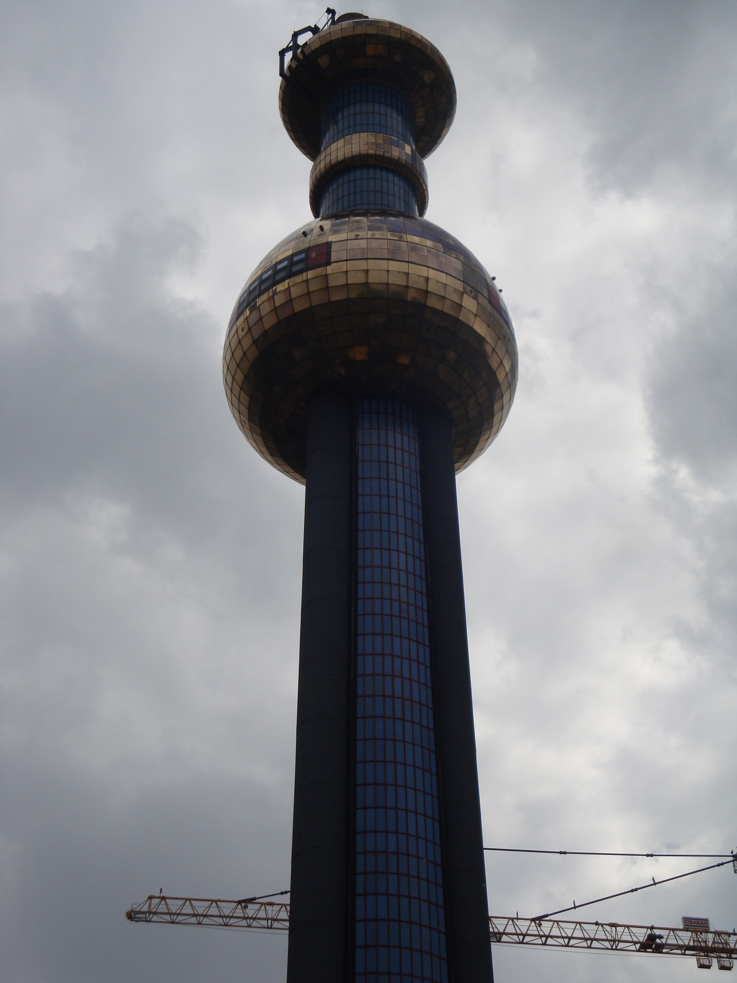 Hundertwasserhaus an der Ecke Kegelgasse/Löwengasse und Fernheizkraftwerk Spittelau, Wien 2014