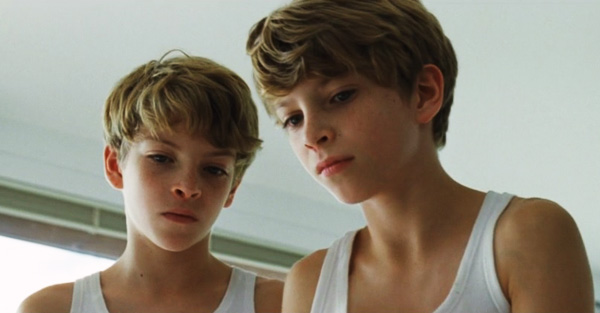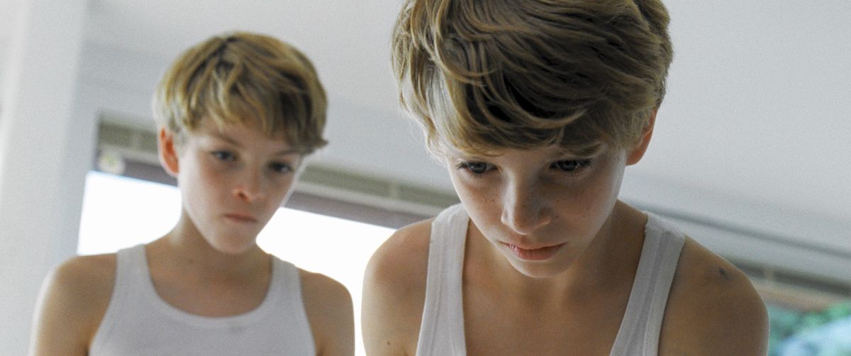 Hundstage in der Provinz. Das Interieur dieser recht feinen Immobilie mit See vor der Tür, Tiefkühltruhe im Keller und Trampolin im Garten, alles so schrecklich normal hier, bloss dass irgendwas nicht stimmt. Die blassen Farben im Haus, die unscharfen Kunstfotos an den Wänden, die spärliche, nicht eben kindergerechte Möblierung und dann dieser verbundene Zombie-Kopf der Mutter. Die subtile Stilisierung der Bildkompositionen, die Zwillingssymmetrie schon im Titel - eine seltsam entwirklichte Welt in Cinemascope. Im Haus herrscht Entfremdung, draussen regiert die Natur. Ein Seelendschungel: Die Jungs springen im Regenschauer auf dem Trampolin herum, dass es nur so spritzt, später grollen Gewitterwolkenmonster am Himmel. Es liegt viel Schönheit im Schrecken.