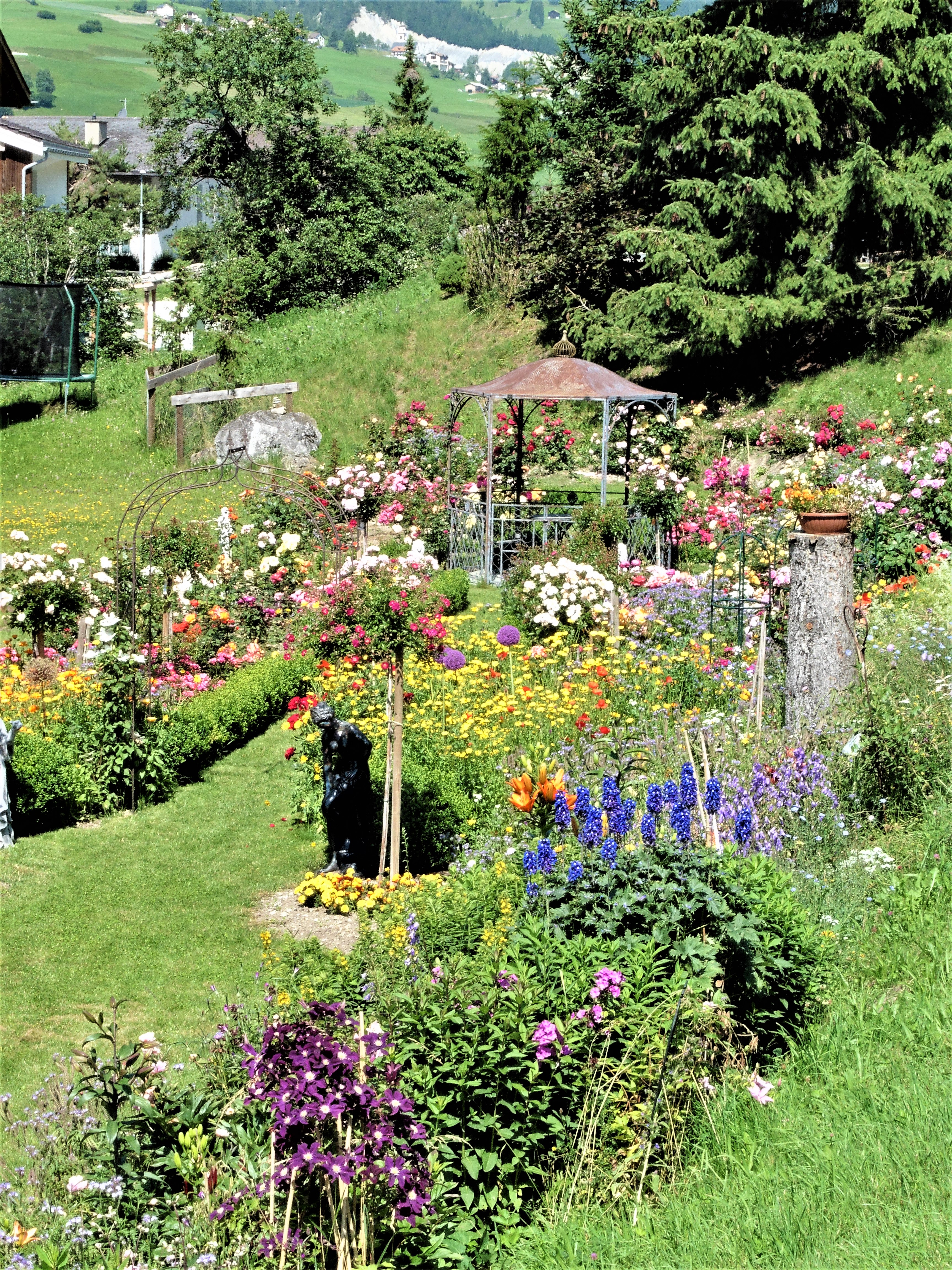 Robert S. Bolli am 18.08.2021 Eine völlig unerwartete Entdeckung am Ortsrand von Savognin: Ein kleines, prächtig blühendes Bijou als Gartenoase eines Mehrfamilienhauses.