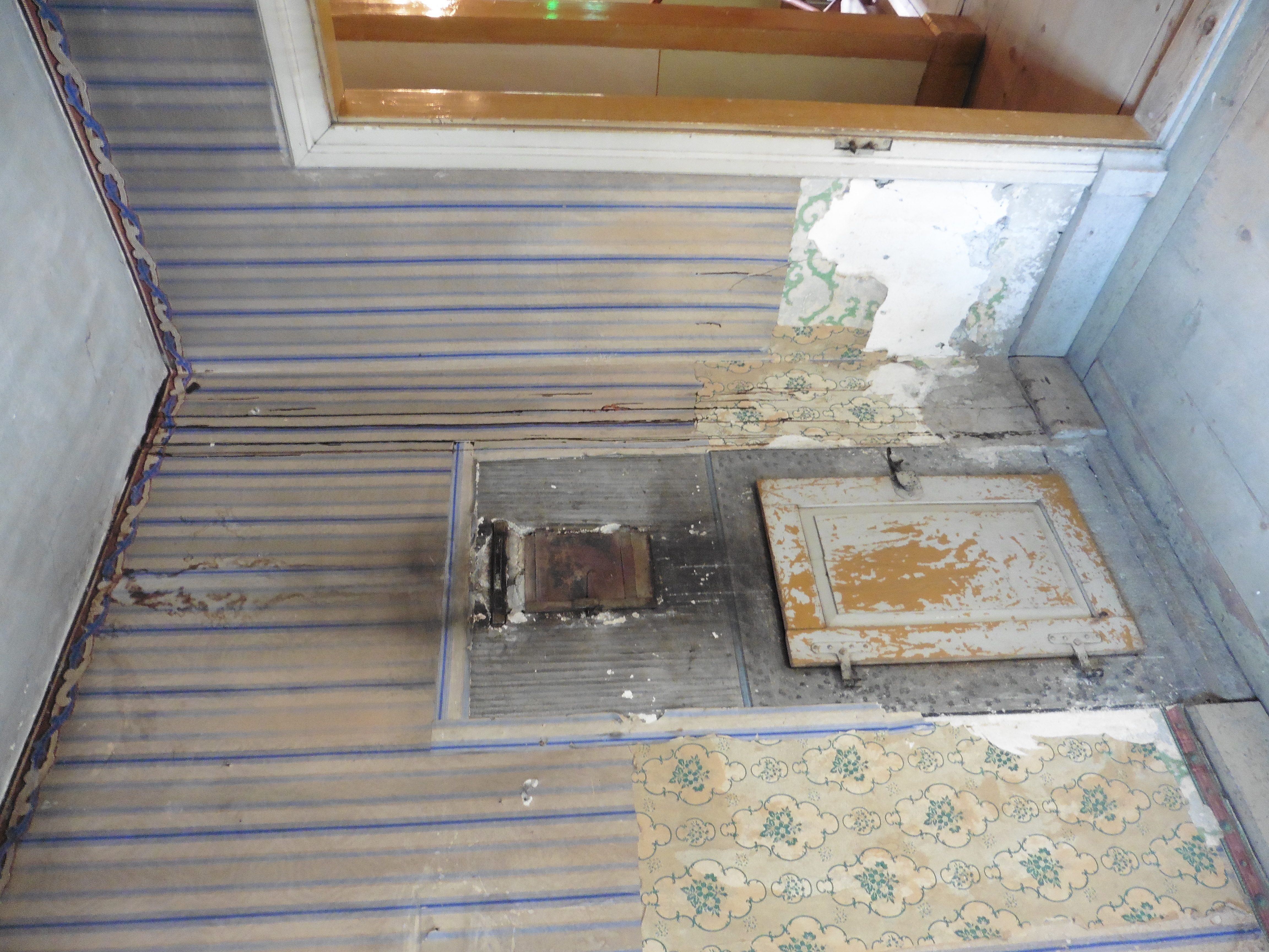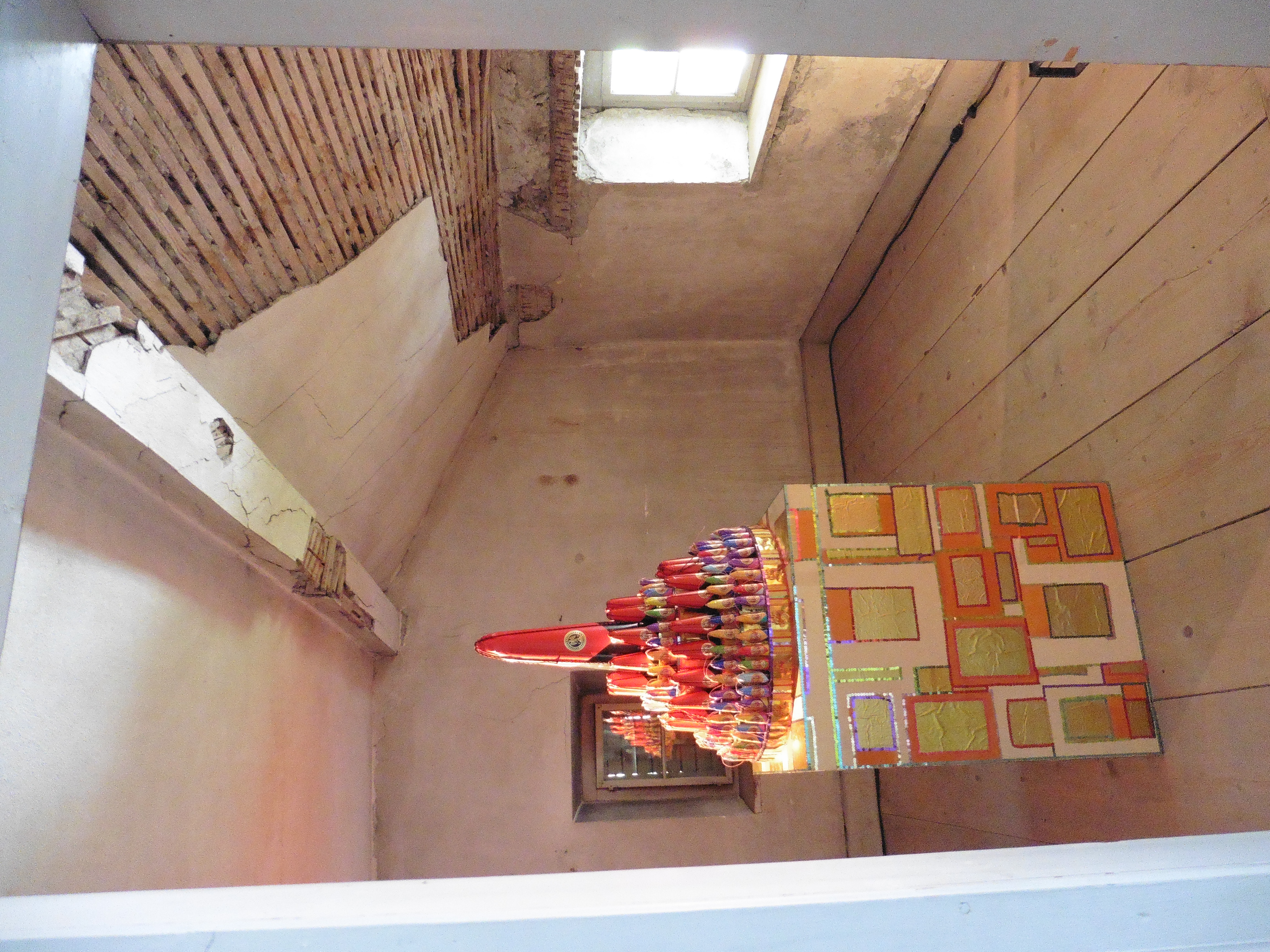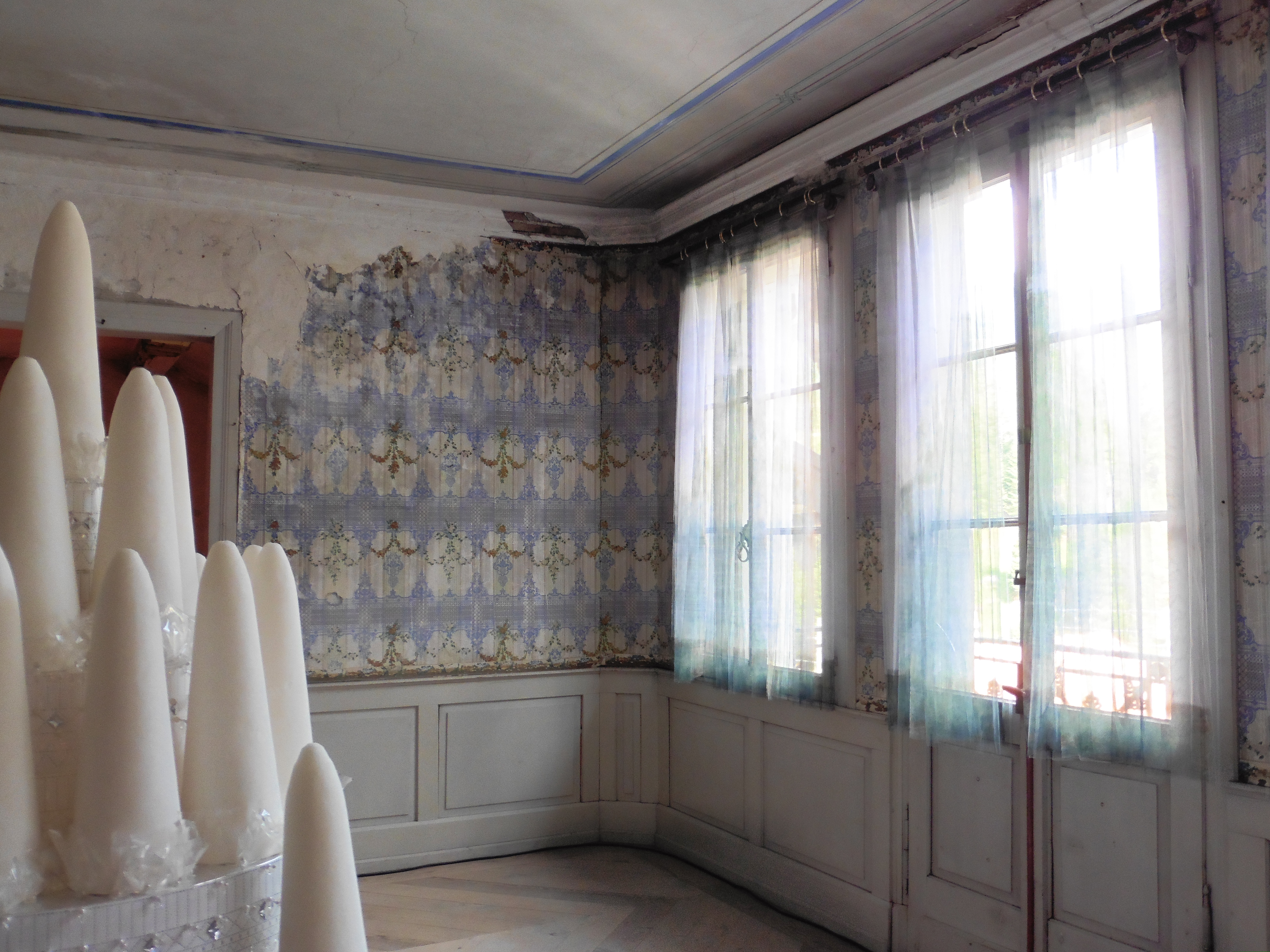 Ein weiterer Raum, der auf seine Renovation wartet. Die Zuckerstöcke symbolisieren die Tätigkeit, mit der Jean Jegher zu Reichtum gelangte.