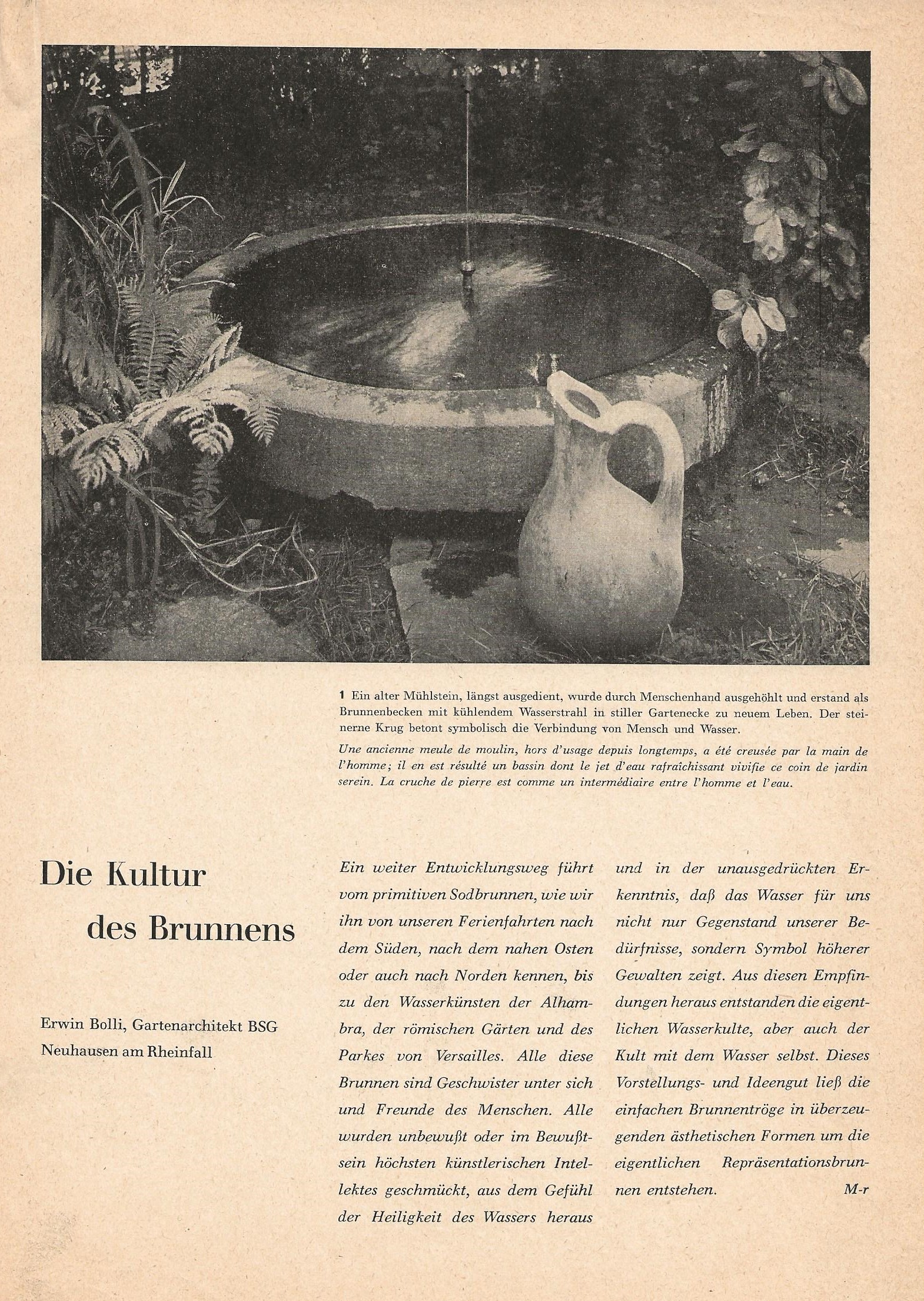 Der folgende Artikel mit Texten und Fotos von Erwin Bolli stammt aus der schweizerischen Zeitschrift "Mys Hus" - Jahrgang ca. 1955 - einer Publikation für Haus- und Gartenbesitzer, mit fachlichen Informationen, Tipps und Anregungen, sowohl für Laien als auch Fachleute aus der Architektur- und Baubranche.