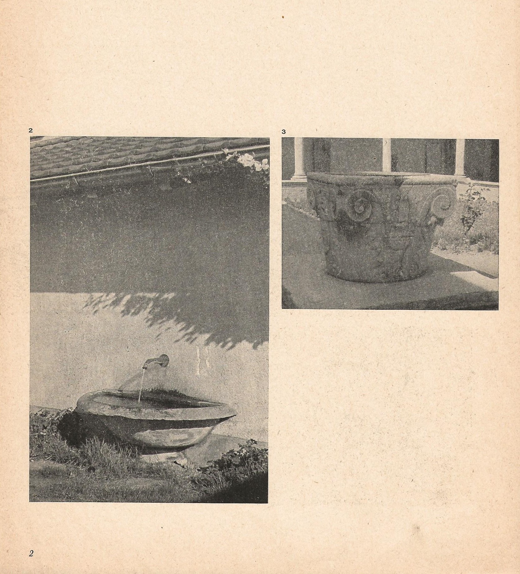 links: Das schön geschweifte Brunnenbecken stammt vermutlich aus dem Spät-Biedermeier. Es fand an der sonnigen Hausfront als Gartenbrunnen und Spender von Kühle und Ruhe über dem Sitzplatz vor dem Wohnzimmer Aufstellung.