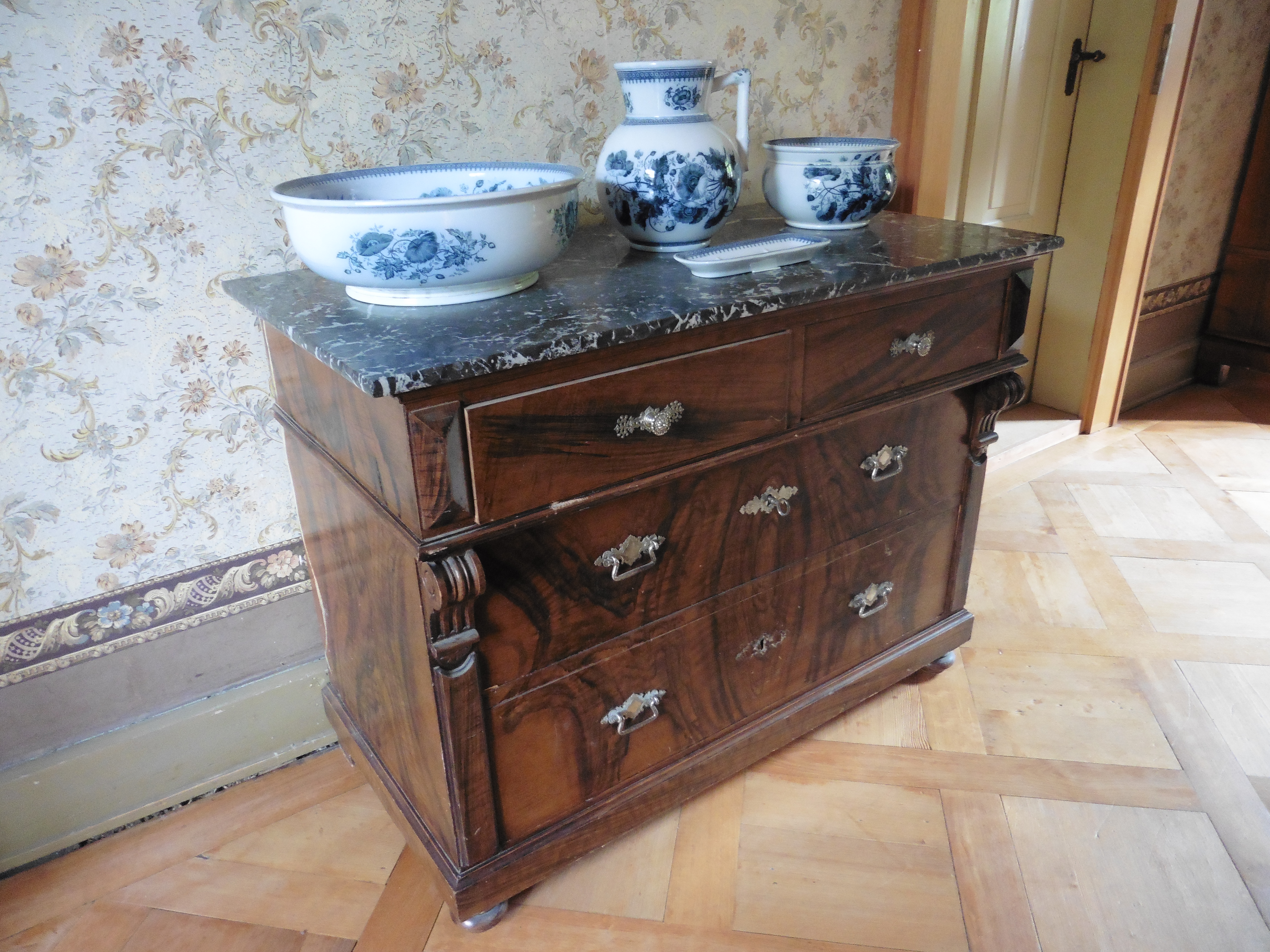 Eine sehr gut erhaltene Waschkommode mit Marmorplatte.