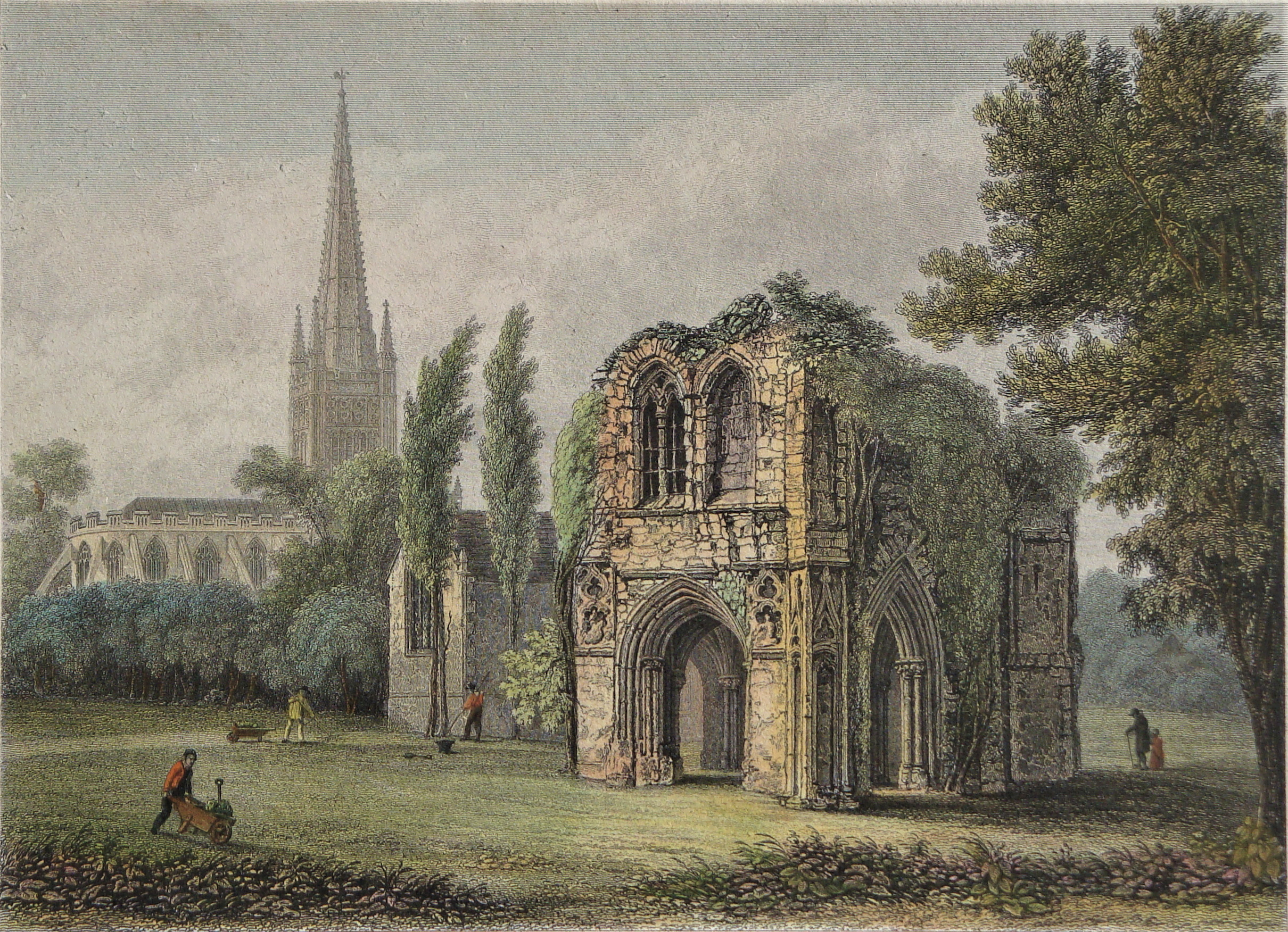 Der abgebildete kolorierte Kupferstich trägt den Titel: Ruins in the Bishops Garden, Norwich, und entstammt einer im Jahr 1830 von John Britton angefertigten Mappe mit der Bezeichnung Picturesque antiquities of English cities: illustrated by a series of engravings of ancient buildings, street scenery, etc. with historical and descriptive accounts of each subject. Gestochen von John Le Keux.