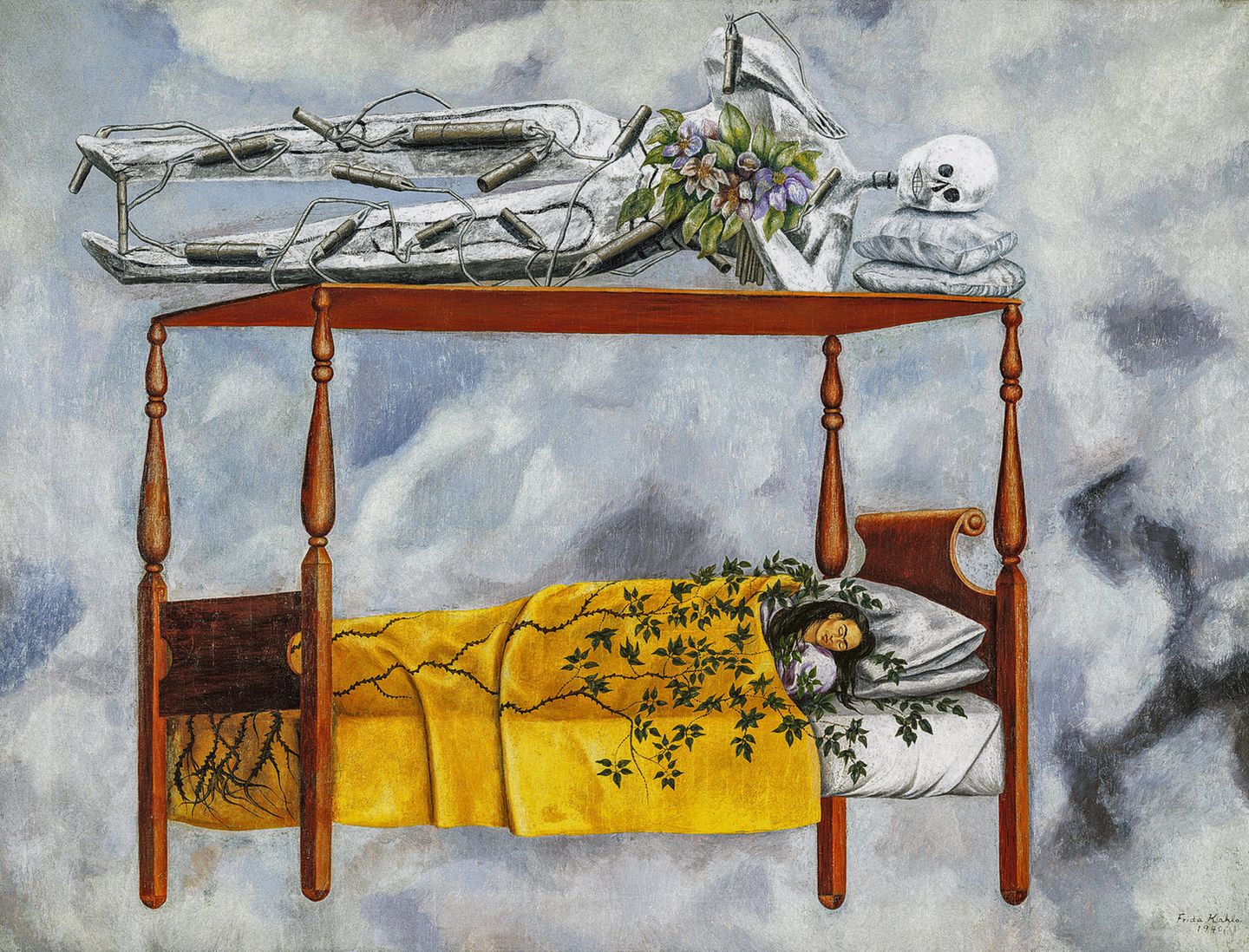 Als Grund für ihre zahlreichen Selbstporträts - weitere 54 werden im Laufe der Jahre hinzu kommen - meinte sie: "Ich male mich, weil ich sehr viel Zeit allein verbringe und weil ich das Motiv bin, das ich am besten kenne." Entgegen allen medizinischen Prognosen lernte Frida Kahlo wieder gehen. Gleichwohl litt sie ihr ganzes Leben unter den Folgen des schweren Unfalls. Das Malen wurde zum Ausdruck ihrer seelischen und körperlichen Qualen. Infolge des Unfalls konnte sie keine Kinder bekommen. Mehrere Fehlgeburten verarbeitete sie in Bildern wie Meine Geburt; über den Schmerz hinwegtrösten konnten sie jedoch nicht.
