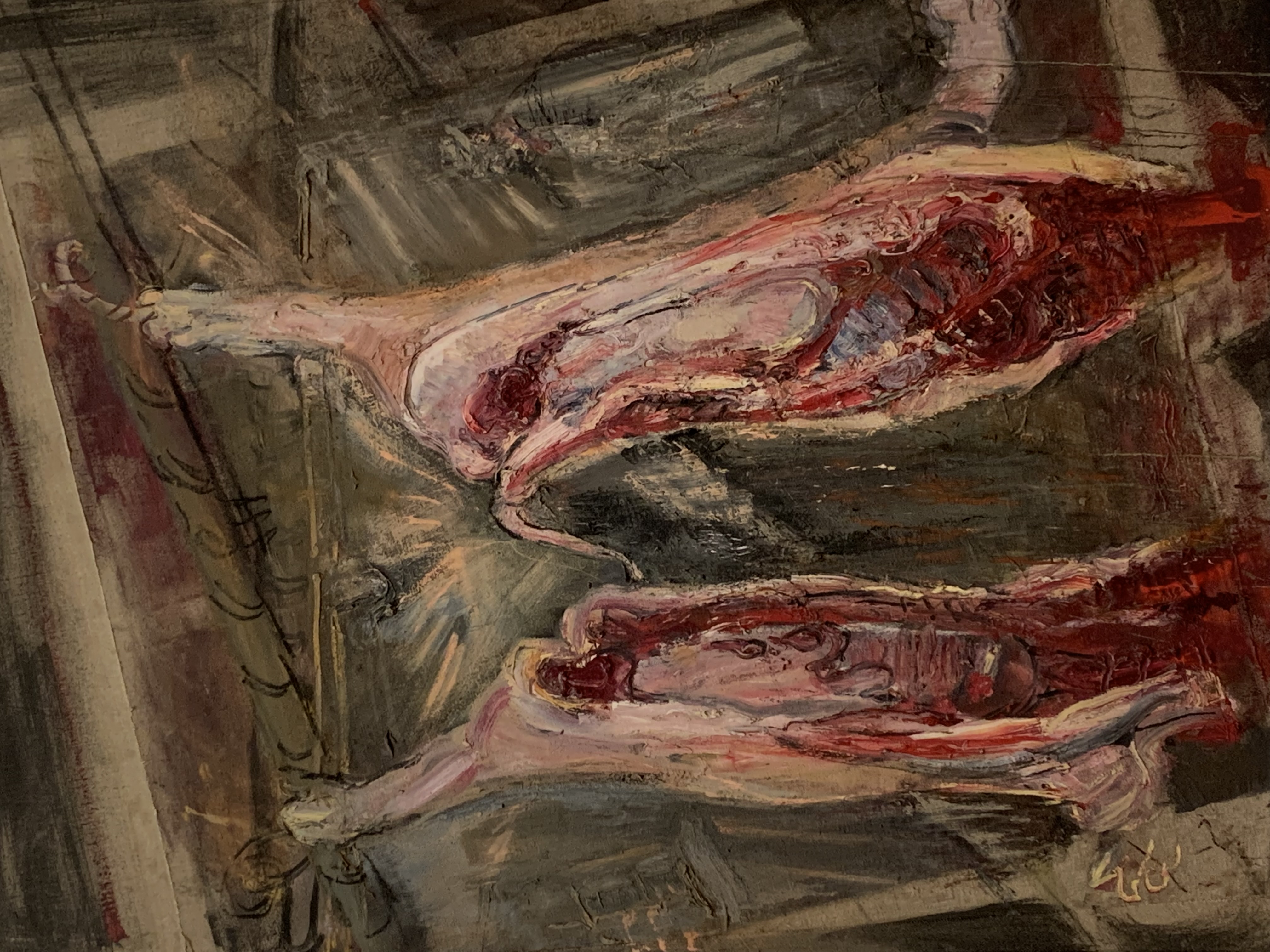 Mittlerweile hat die Postmoderne ja erkannt, dass Realismus und Abstraktion nebeneinander ihre Berechtigung haben. Schon im ersten Saal der Ausstellung wird gezeigt: Beide Künstler sind tief in die Frage nach Leben und Tod eingetaucht - so ist beiden das Schlachthaus ein wichtiges Thema. Es gibt die realistischen Bilder von Metzgereien, aber während Varlins Gemälde von Tierhälften den Betrachter abschreckend real irritieren, sind Mosers grossformatige Fleisch- und Blut-Gesten die abstraktere Variante vom Gleichen, nämlich der Schlächterei. Dieselbe Parallele zeigt sich auch in den Metrobildern, die bei Moser zu Schreckensszenarien mutieren.