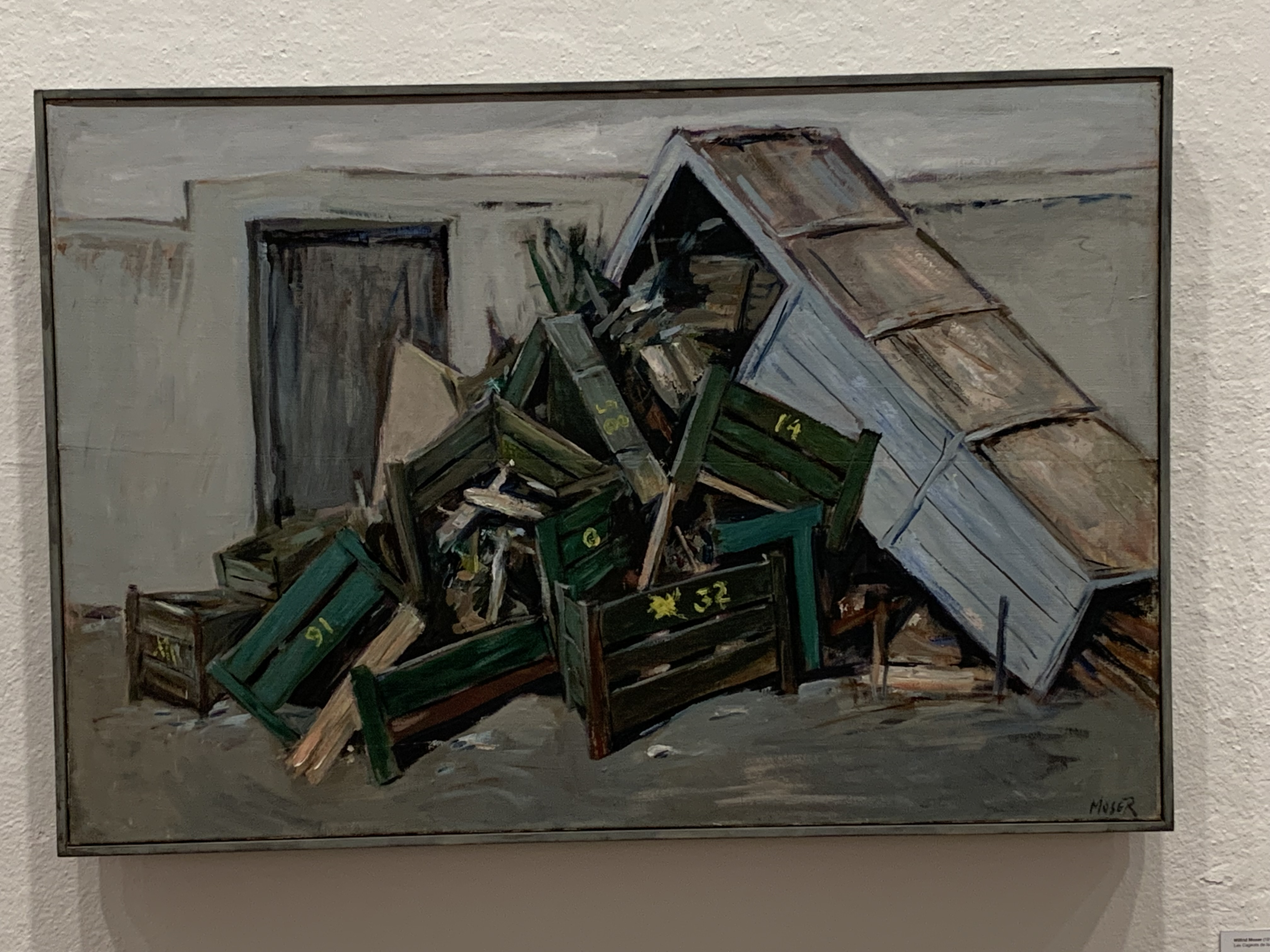 Oder das Motiv vom Tod. Varlins verstörendes Riesenbild, inspiriert vom Friedhof in Almunécar, von dem auch Moser unauslöschbare Eindrücke später verarbeitete, ist im Jahr 1958 für die Malerei der Schweiz singulär. Wer diese Todeslandschaft heute anschaut, kann sich den Assoziationen an Bilder aus dem Krieg kaum entziehen. Im selben Raum hängen Mosers Paraphrasen des berühmten Géricault-Bilds Das Floss der Meduse, Motiv ist ein Abfallhaufen grünlich-grauer Holzkisten, eine nature morte im Wortsinn.