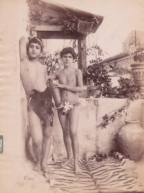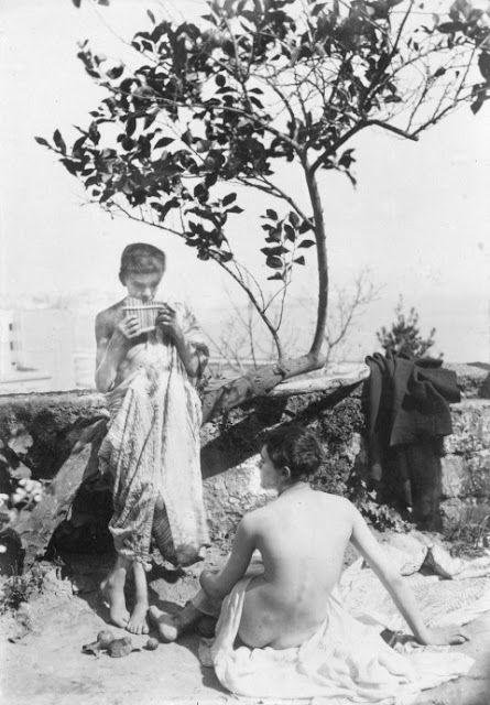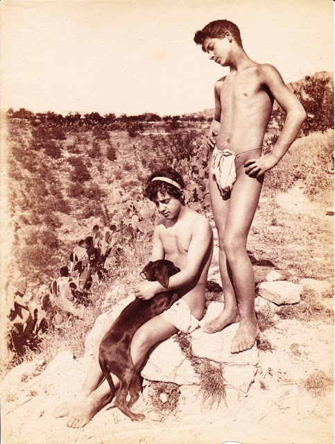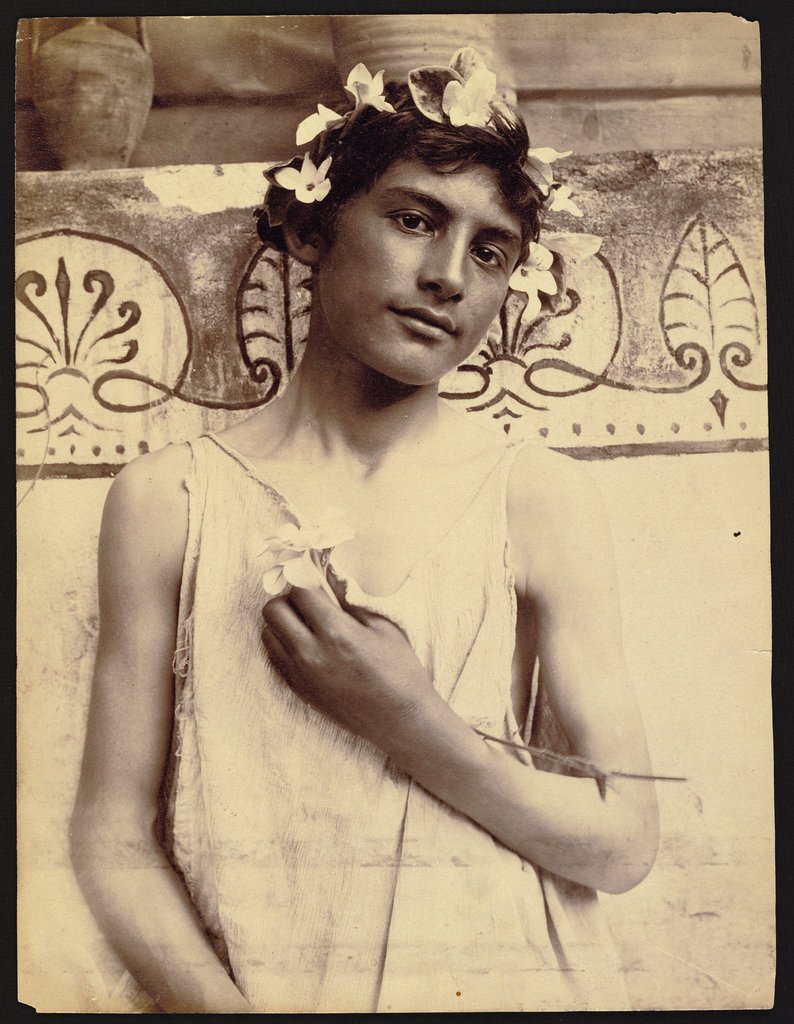 Doch wer war Wilhelm von Gloeden? Auf Wikipedia erfährt man schon ziemlich viel über diesen eigentümlichen Zeitgenossen, der sich selbst als Baron bezeichnete und angeblich auf einem Schloss in Mecklenburg geboren wurde, das jedoch nie existierte. An dieser Stelle nur soviel in Kürze: WvG wurde am 18. September 1856 in Volkshagen geboren, und starb am 16. Februar 1931 in Taormina. Nach dem Abbruch einer militärischen Laufbahn, erlernte er den Beruf des Fotografen. Als Zwanzigjähriger übersiedelte er aufgrund eines schweren Lungenleidens nach Sizilien, das ihm des milden Klimas wegen empfohlen wurde. In Taormina begann er im Jahr 1880 mit dem Fotografieren von Landschaften und Menschen und eröffnete dort ein Fotostudio. Bekannt wurde er vor allem wegen seiner Darstellungen nackter Knaben und junger Männer, die er vorzugshalber in antikisierter Umgebung mit entsprechendem Accessoir posieren liess.