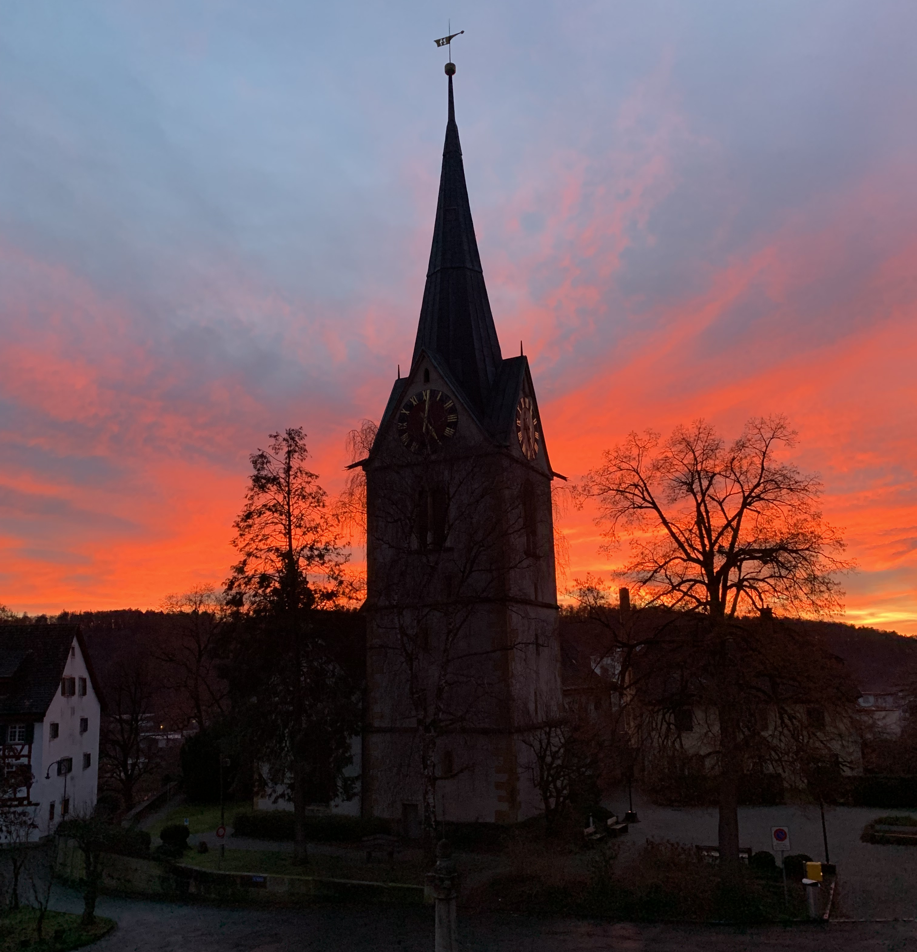 Ja, liebe Freunde. Das alte Jahr klingt mit einem spektakulären natürlichen Feuerwerk aus. Ein blitzschneller Schnappschuss am frühen Silvesterabend, aufgenommen aus dem Fenster des "Schaffhauserstüblis" unserer Wohnung. Okay, ich weiss: der Turm der reformierten Kirche zu Thayngen wird auch in Zukunft noch öfters auf meinen Fotos zu sehen sein. Aber der Ausblick auf den Kirchplatz mit all seinen historischen Gebäuden ringsherum ist auch bei Tageslicht einfach wunderschön - und manchmal eben auch atemberaubend! In diesem Sinne: lassen wir uns überraschen, was uns das neue Jahr 2023 bescheren wird....