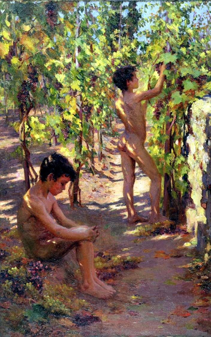 Trauben pflückende Knaben auf Capri (1906; Öl auf Leinwand; 79,4 cm x 52,1 cm)