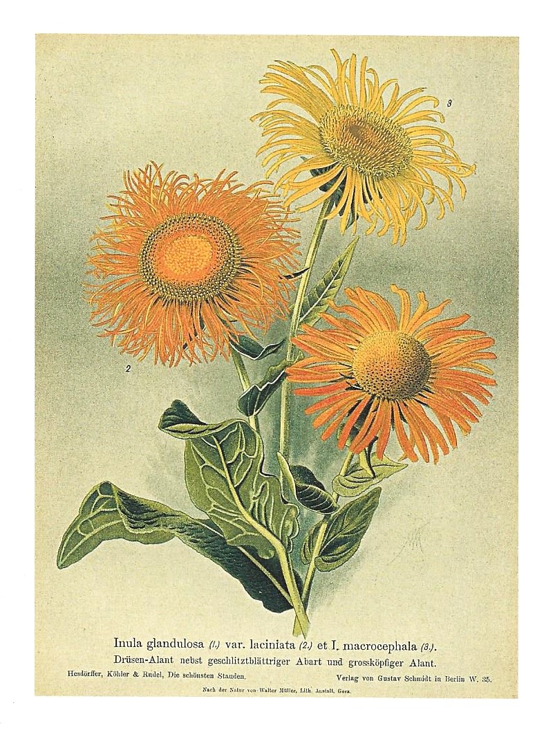 Inula glandulosa, Drüsen-Alant, Max Hesdörffer, Die schönsten Stauden, Berlin 1901