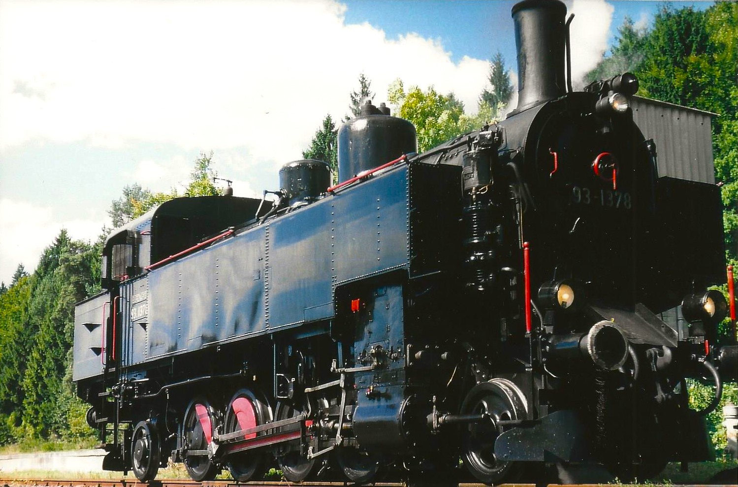 Zu den öfters eingesetzten Zugpferden der Museumsbahn gehörte zweifellos die BR 93-1378, eine Tenderlok mit der Achsfolge 1-D-1. Sie verliess im Jahre 1939 die Lokomotivfabrik Wien-Floridsdorf, war zuletzt im ÖBB-Depot St.Veit an der Glan beheimatet und erreichte ums Jahr 1978 über mehrere Umwege das Wutachtal.Die Fotos oben zeigen die Lok beim Wasserfassen im Bahnhof Weizen. Als Besonderheit verfügte die 93-1378 über eine Ventilsteuerung, im Gegensatz zu ihrer baugleichen Schwestermaschine der BR 93-1394 mit einer herkömmlichen Schiebersteuerung. (Bilder unten)