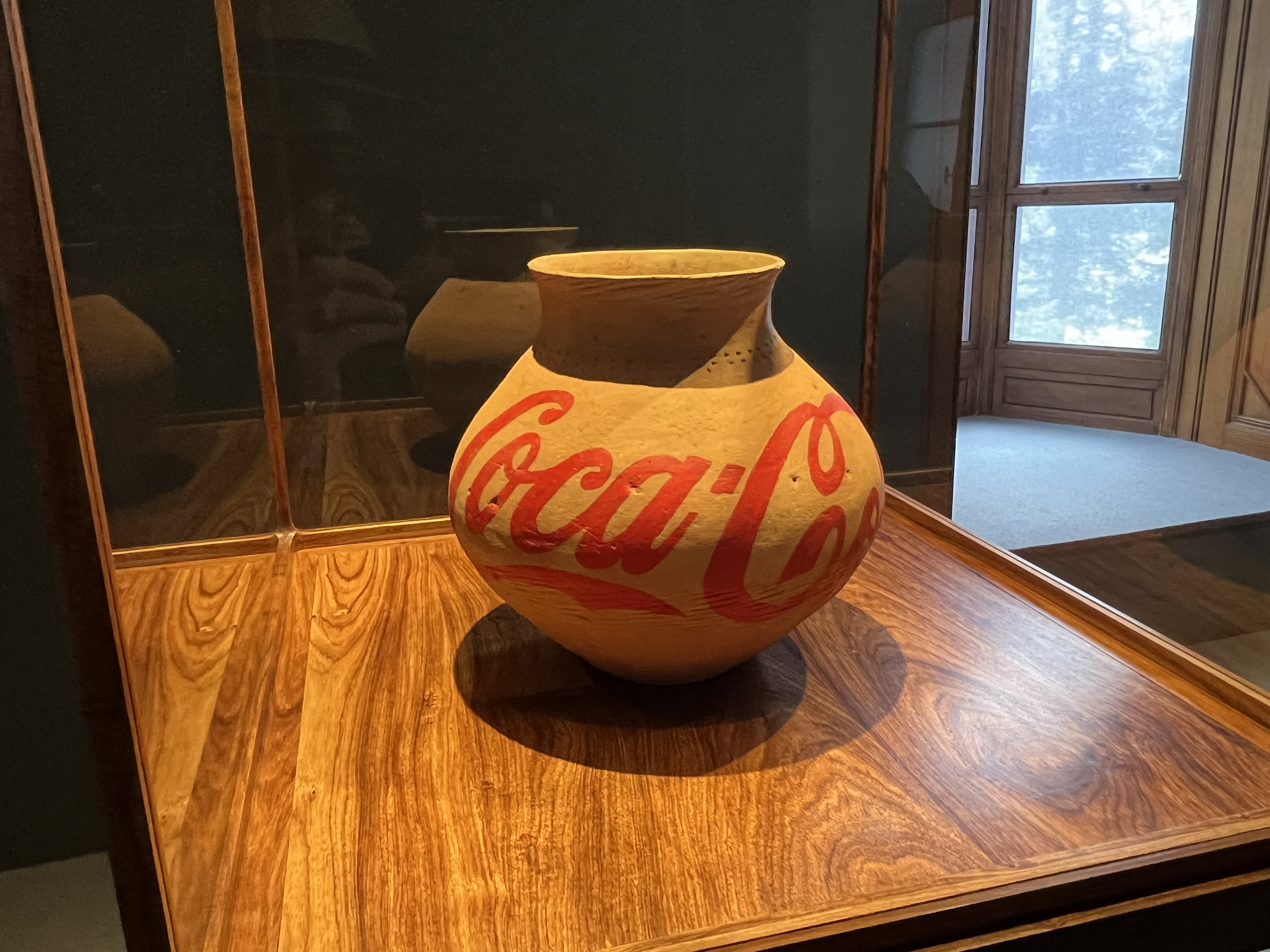 Ein der Hallstatt-Zeit nachempfundenes Keramikgefäss mit Pop-Art-Beschriftung eines US-Amerikanischen Getränkegiganten.