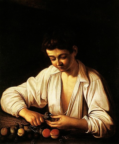 Caravaggio: Ein Früchte schälender Junge (Öl auf Leinwand; 1593)