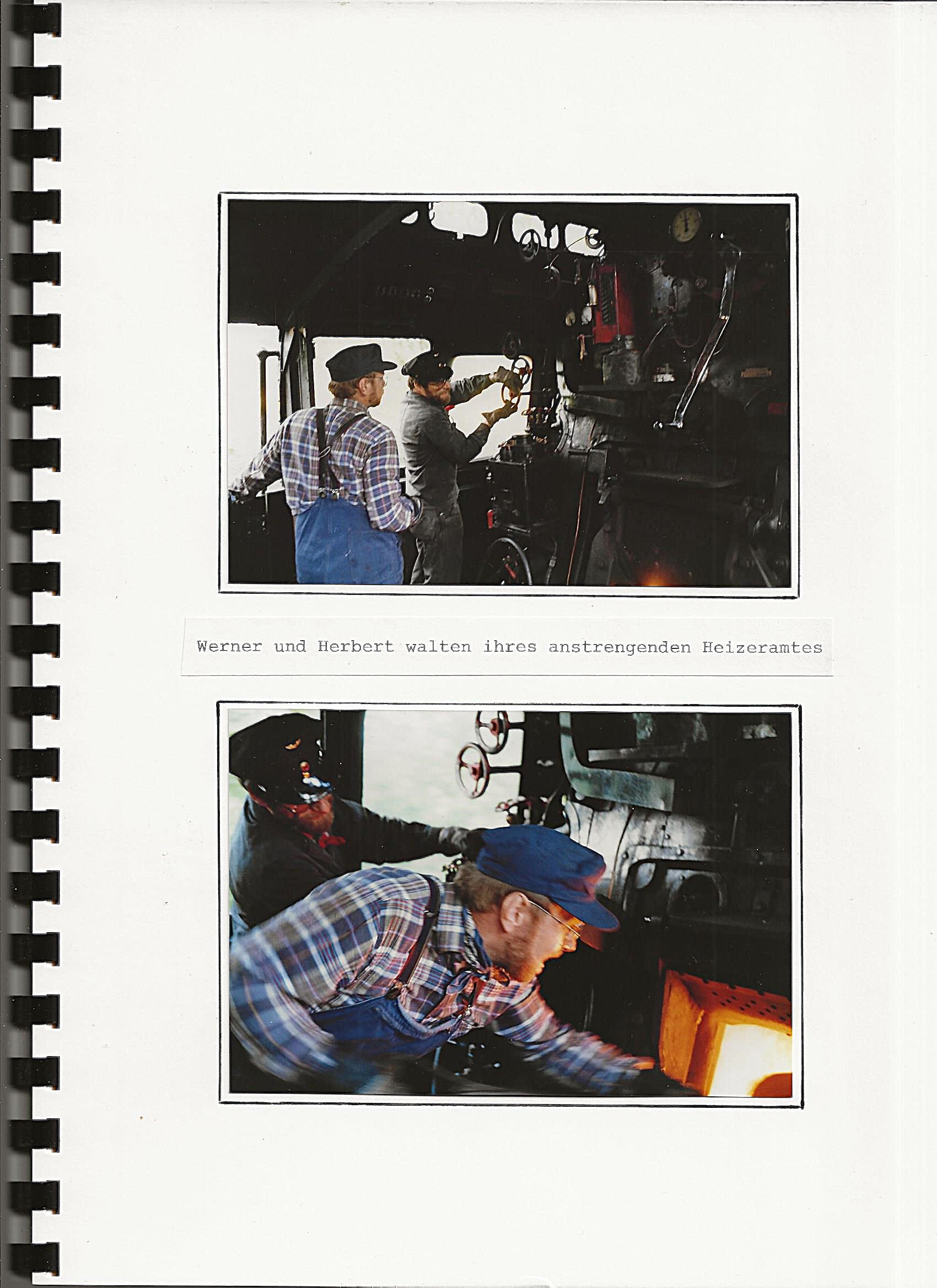 Es würde an dieser Stelle zu weit führen, den ganzen Bericht wiederzugeben. Wichtiger sind für mich die Fotos, die realistisch den Alltag auf der Museumsbahn veranschaulichen. Und es ist eine weitere schöne Erinnerung an meinen Lokführerkollegen Werner Lingg.