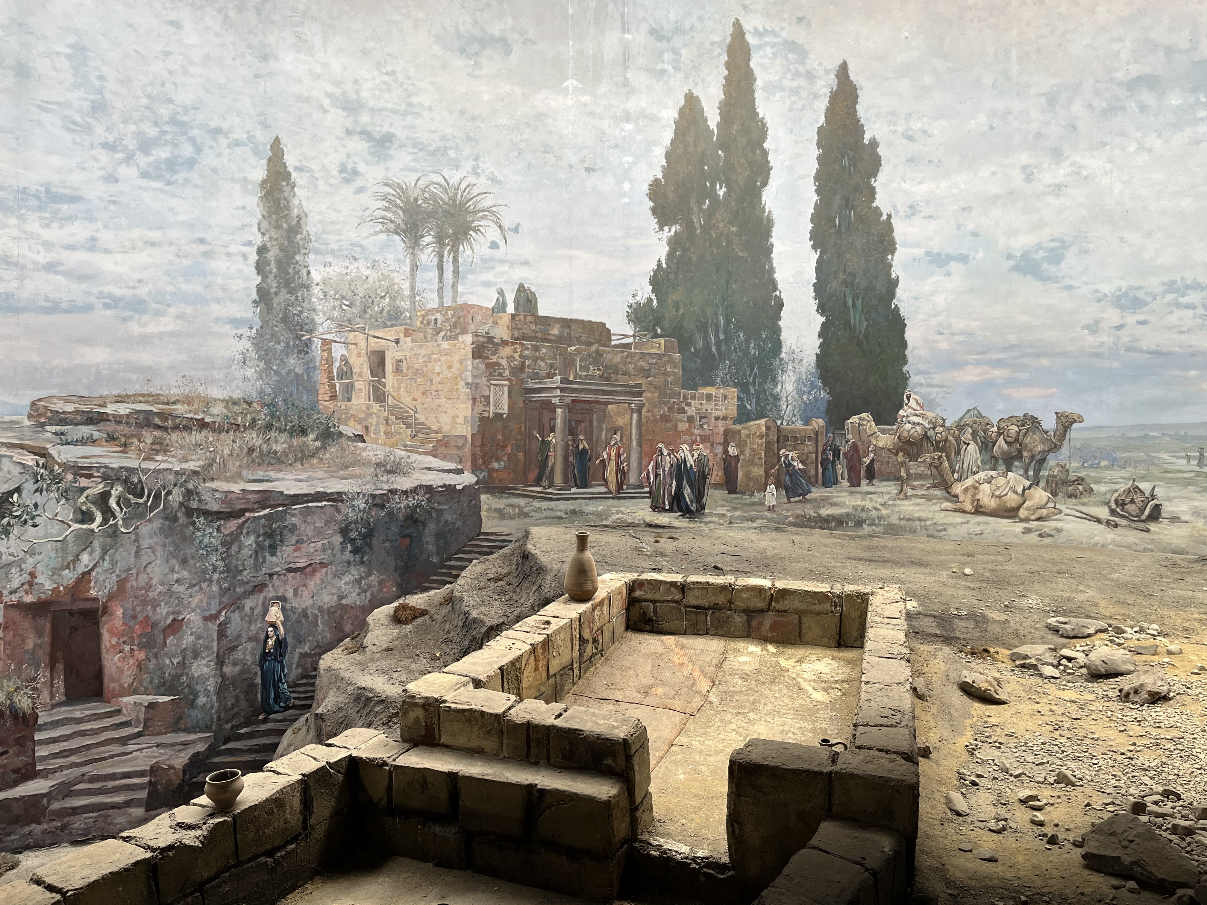 Das Grab Christi mit einer Wasserträgerin, die vom Landhaus herunter kommt.