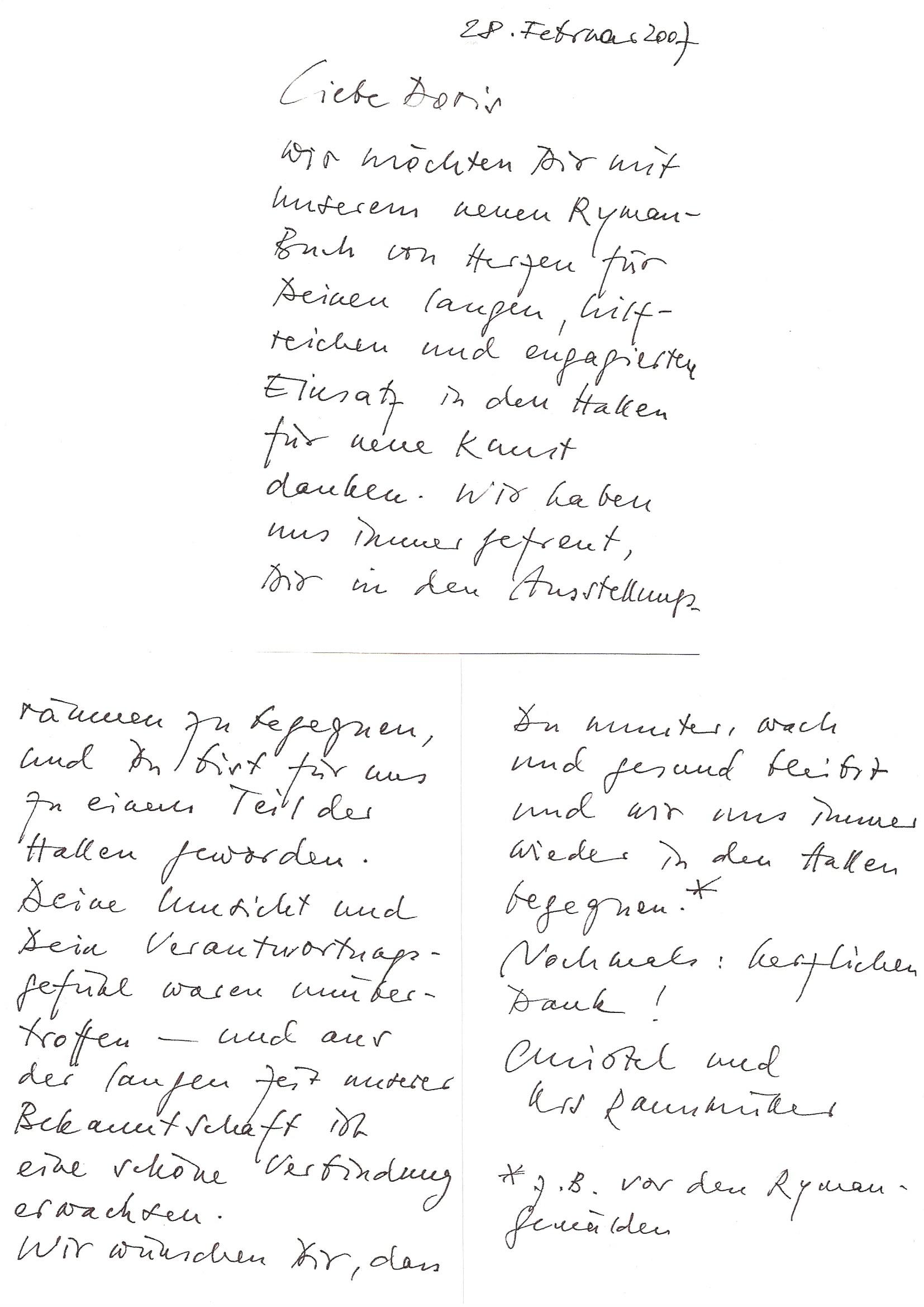 Das letzte Dankesschreiben von Christel Raussmüller an meine Mutter. Datiert vom 28. Februar 2007
