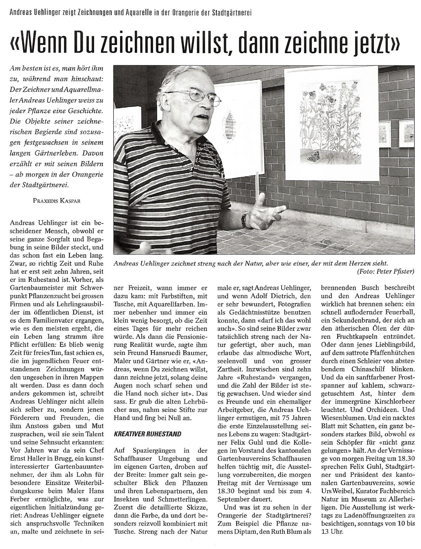 Den oben abgebildeten Text habe ich bewusst im Original einer Publikation der Schaffhauser Arbeiterzeitung vom 14. August 2008 entnommen. Ich finde, er ist leicht lesbar und enthält alles Wichtige über das Leben und Werk von Andreas Uehlinger.
